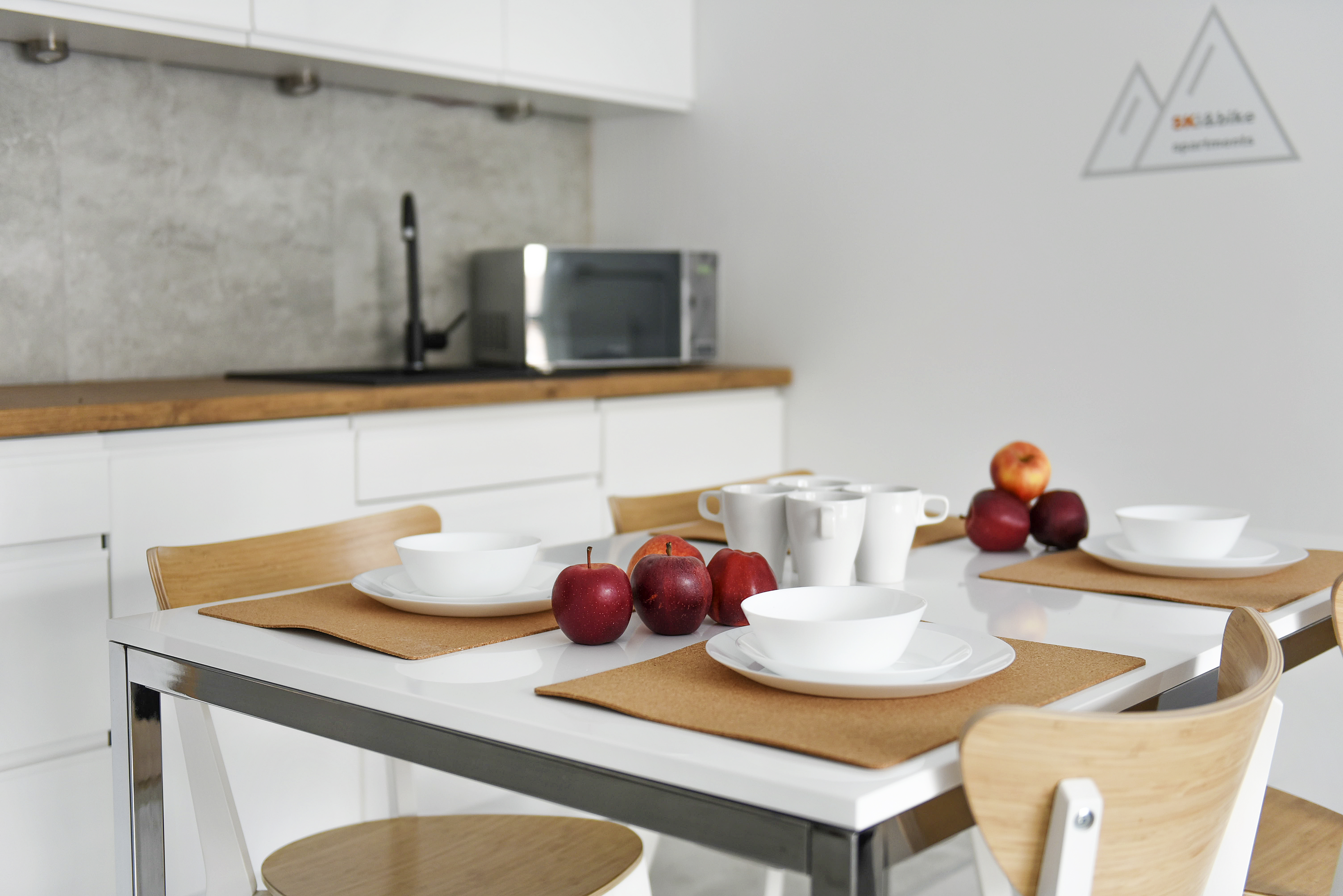 Apartamenty zostały wykończone i urządzone w lekkim, nowoczesnym stylu, w trosce o komfort odpoczynku po aktywnościach jakie oferują Beskidy. Chcemy aby nasi Goście czuli się jak w domu i chętnie wracali do nich po raz kolejny.