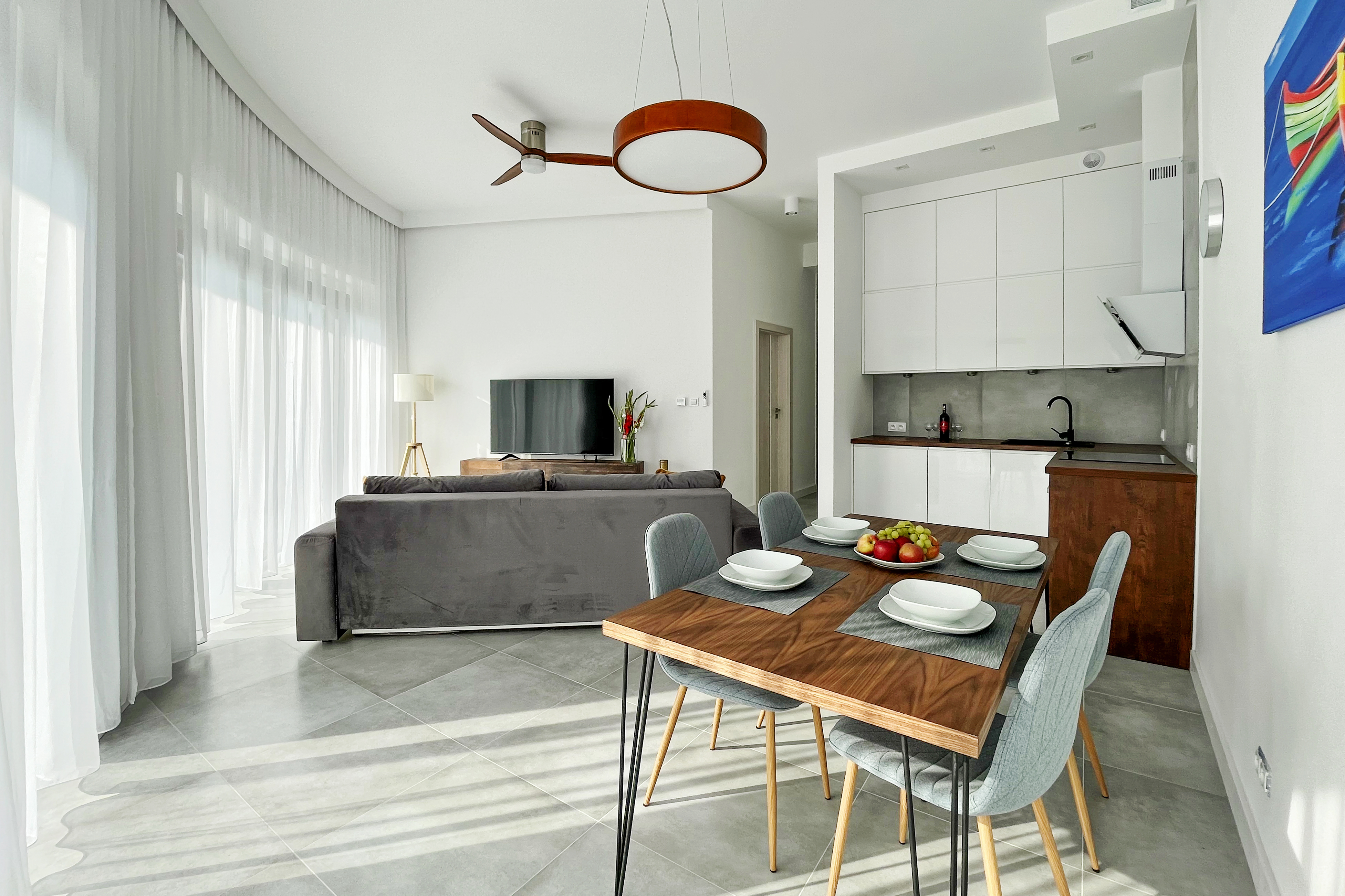 Apartament posiada: 2 sypialnie, 1 łazienkę, pościel, ręczniki, jadalnię oraz aneks kuchenny z pełnym wyposażeniem. Do dyspozycji Gości jest także telewizor z płaskim ekranem.